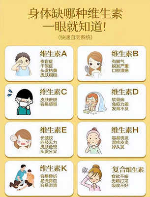 通過幾張圖片,了解一下維生素的分類以及體內(nèi)缺乏某些維生素時身體會出現(xiàn)的一些異常癥狀。